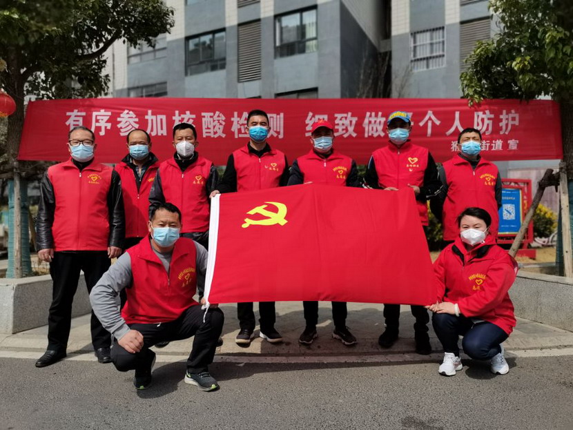 開發(fā)區(qū)猴咀片區(qū)昌圩湖社區(qū)是港城最大的小區(qū)之一,常年居住人口達(dá)萬人,面對(duì)疫情社區(qū)壓力大、任務(wù)重。公司疫情防控(昌圩社區(qū))臨時(shí)黨支部組織居住在社區(qū)的投資公司員工參與疫情防控,所有黨員和積極分子聞疫而動(dòng),逆行而上,不顧個(gè)人安危,第一時(shí)間參與到社區(qū)的志愿者行列中,積極參加社區(qū)的各項(xiàng)抗疫工作,大家服從管理,聽從安排,重活累活搶著干,社區(qū)消殺、巡查、上門登記、維穩(wěn)、核酸檢測(cè),到處都有他們的身影,現(xiàn)已成為社區(qū)疫情防控的主力軍。關(guān)鍵時(shí)刻能豁得出、頂?shù)蒙希米约旱膶?shí)際行動(dòng)踐行使命,用一顆對(duì)黨忠誠(chéng)的心,全力守護(hù)人民群眾的生命和健康,真正做到:“一名黨員就是一面旗幟,一個(gè)支部就是一座堡壘。”