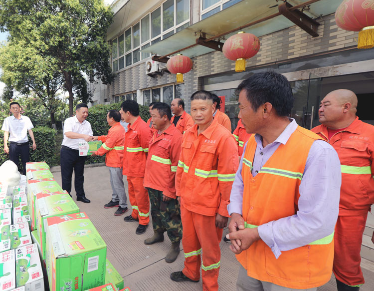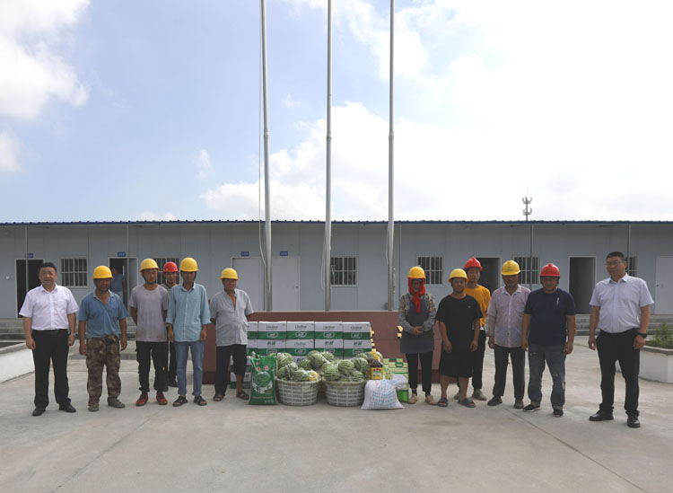 ?????? 每到一處,公司領導分別與員工們親切交談,對堅守在一線辛苦工作的員工表示感謝,細心詢問他們的工作生活情況,囑咐他們務必做好高溫作業的個人防護,并為他們送上綠豆、白糖、牛奶、飲料等慰問品。同時要求各基層單位做好一線職工高溫作業的防暑降溫工作,合理調節工作時間,做實做細職工勞動保護工作,提振職工干事創業信心。(徐宣 ?徐工)