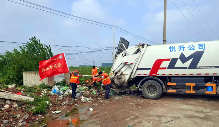 ? ? ? ?8月22日上午,室外熱浪滾滾,橙色工作服在強烈陽光照耀下顯得格外引人注目。環衛分公司黨員突擊隊第一時間加入到環境衛生“治理”中。活動中,隊員們沖鋒在前,不怕臟、不怕累,及時對轄區各類生活垃圾進行清理。在轉運各類垃圾過程中,該分公司管理人員身先士卒,積極與大家奮戰在一起,經過4個小時的連續作戰,共清理垃圾點4處,清運垃圾約7余噸。