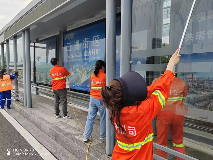 ? ? ? ?集中勞動“有力彰顯”。學(xué)習(xí)活動結(jié)束后,保潔、機(jī)關(guān)黨支部20多名黨員匯集新區(qū)核心區(qū)域徐圩大道,南京路等路段,開展黨員義務(wù)勞動。活動現(xiàn)場,大家分工明確,相互配合,無懼高溫天氣,上下?lián)]動雙臂,沖洗站臺玻璃和清理廣告標(biāo)語,經(jīng)過兩個多小時持續(xù)奮戰(zhàn),徒手清洗站臺20多個,座椅40多個。(楊波)