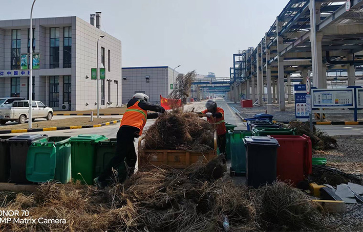 為營造石化園區(qū)內部優(yōu)美整潔靚麗環(huán)境,保潔分公司聞令而動,第一時間趕赴中化倉儲公司院內,高質高效完成突擊清理任務而努力奮戰(zhàn)。
