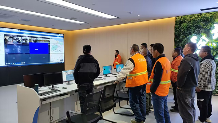 為提升大型車輛駕駛員工作成效,發(fā)揮現場考核與運管智慧平臺作用。4月3日上午8時許,保潔分公司車隊近20余名駕駛員有序來到徐圩悅升智慧平臺系統監(jiān)管大廳,現場實時收看各自清掃工作動態(tài)畫面,真實體會自身工作實效。