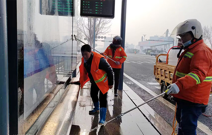 道路清掃“有龍聲”。為了保持假日期間園區(qū)路面干凈整潔,瑞南保潔班組加班加點,對重點路段加大保潔力度。早上六點,園區(qū)主次干道身穿橘色工作服保潔衛(wèi)士,拿著清掃工具,對道路死角進(jìn)行細(xì)節(jié)清掃,為出行市民營造整潔靚麗的園區(qū)環(huán)境。保潔分公司小分隊50余名保潔值守工作人員如往常一樣來回不停穿梭于徐新路、上海路等園區(qū)道路沿線兩側(cè)。兵分8路進(jìn)行作戰(zhàn),彎腰撿拾路邊各類垃圾、清洗站臺20余個、清倒各類果皮箱200余個、清理人行道上雪塊50余處,清理戰(zhàn)線約1500余米長。