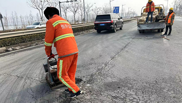 市政維護(hù)“有龍威”。大年初二,市政值班人員在日常巡視中發(fā)現(xiàn)港前大道至蘇海路段出現(xiàn)3處道路坑塘,造成極大的道路交通安全隱患。值守工作人員第一時間帶好瀝青冷補料,切割機(jī)和平板振動夯等工具第一時間到崗到位。擺好安全警示錐、路面切割、補料、修復(fù)……大家齊動手,配合和諧,連續(xù)作戰(zhàn)2個多小時,高質(zhì)高效將道路坑塘修補到位,確保春節(jié)期間道路交通安全。