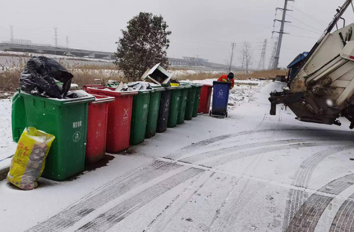 垃圾清運工作絕不后退。暴雪之中垃圾收運工作極其困難,既要面臨嚴寒考驗,又要防范雪中路滑。垃圾收運職工們清晨五點多天未曉白時即已全面開展工作。面對雪天路滑,他們小心翼翼的做好每一桶垃圾的收運和傾倒。嚴寒之中,面頰和雙手被凍的通紅,忙碌的汗水濕透衣襟,他們也馬不停蹄的做好徐圩新區范圍內大小七八十個垃圾收運點垃圾清收工作,只為給片區居民和企業創造和諧的衛生環境,沒有任何艱難畏阻他們行進的步伐。