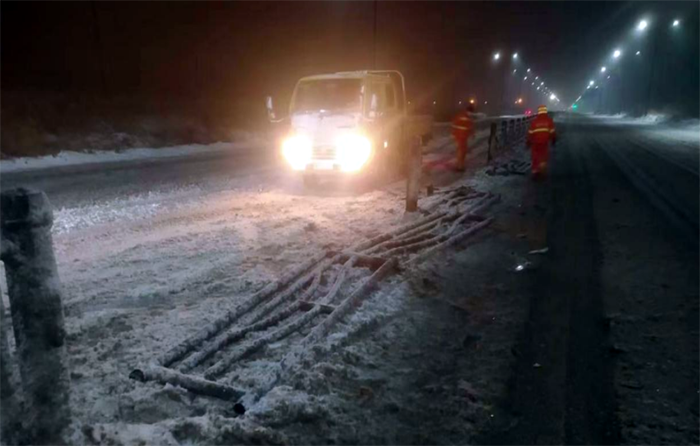 市政分公司根據(jù)公司安排,負(fù)責(zé)融雪劑裝卸工作,從23日下午到4日上午,市政分公司累計(jì)裝卸融雪劑已達(dá)150余噸。該分公司在做好保障融雪劑裝卸作業(yè)的同時(shí),抽調(diào)4名精兵強(qiáng)將,處理因大雪導(dǎo)致的道路交通事故應(yīng)急處置4起,應(yīng)急處理道路護(hù)欄11節(jié),約38米,防止交通事故二次發(fā)生。在5日凌晨更是經(jīng)理盧正楊帶領(lǐng)10名黨員先鋒突擊隊(duì),支援重點(diǎn)道路徐新路的融雪劑拋灑作業(yè),僅靠雙手揮著鐵锨,通宵奮戰(zhàn),迎難而上,高質(zhì)高效完成融雪劑拋灑作業(yè)路段。(李濤)