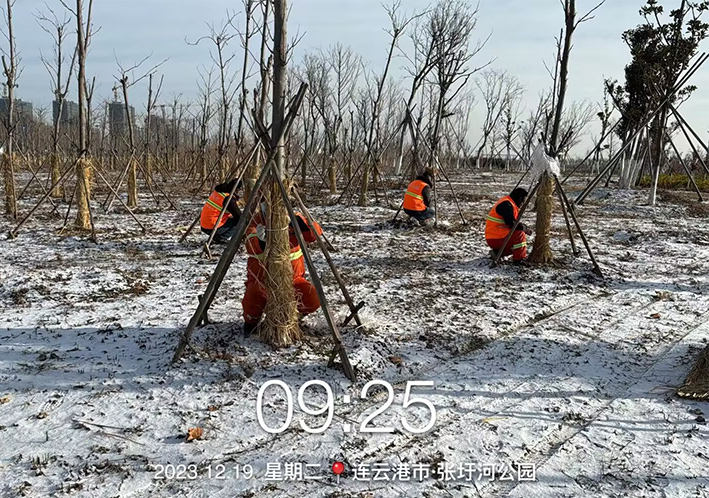 為確保園林樹木安全越冬,有效鞏固園林綠化成果,自11月中旬起,綠化分公司按照早動員、早部署、早實施的原則,在管養區域開展了冬季綠地管護提質專項活動,通過澆灌凍水、樹木修剪、根頸培土、包裹樹干等多項舉措有力保證了苗木安全過冬。