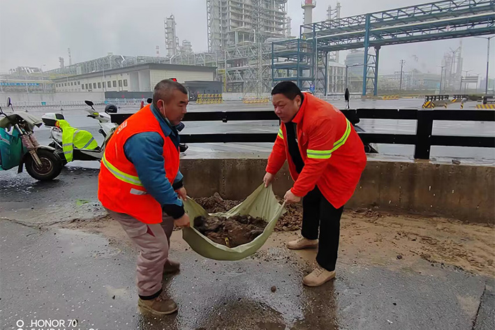 12月13日夜里,受北方冷空氣影響,徐圩地區普降中雨。為保障石化園區冬季道路周邊環境整潔靚麗,園區近10余名黨員先鋒無懼風雨,樂于奉獻堅守道路最前沿,風雨中彰顯黨員敬業高尚風采。