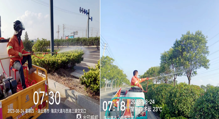 823日,綠化分公司管養(yǎng)轄區(qū)內(nèi)進行植物病蟲害專項檢查。檢查中發(fā)現(xiàn)徐新路、228國道、南京路、上海路等出現(xiàn)病蟲害,造成苗木一定的枯死、病害。該分公司根據(jù)苗木習(xí)性迅速制定整改方案對癥下藥,實行按片劃分,責(zé)任到人。各班組抓住病蟲害防治的有利時機,嚴(yán)格執(zhí)行農(nóng)藥安全使用規(guī)定,采用生物制劑等低毒高效農(nóng)藥,嚴(yán)格控制用藥比例,利用機動噴霧器等工具進行噴灑農(nóng)藥。對枝干害蟲較嚴(yán)重的樹木,進行重點清理,增加噴藥次數(shù),全方位控制病蟲害疫情的擴大和蔓延,有效保護了徐圩新區(qū)綠化植被的健康生長。噴灑農(nóng)藥結(jié)束后,藥罐統(tǒng)一回收,按要求處理,預(yù)防二次污染。