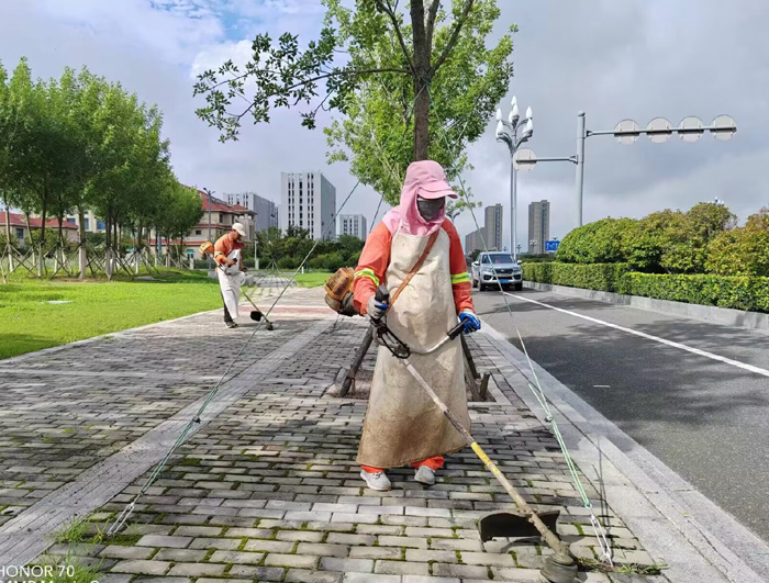 ????? 黑色柏油馬路上,熱浪滾滾,橙色工作服在強烈陽光照耀下顯得格外引人注目。女子班組保潔人員在班長龔飛帶領下,背著30余斤重的割草機,來回擺動手中機械,忘我工作達7個多小時,“收割”云河南路生活區周邊雜草20多處;人工清掃裝運施工車輛拋灑石子、泥土30余車,擦洗站臺座椅40多個,清掏果皮箱余200只。