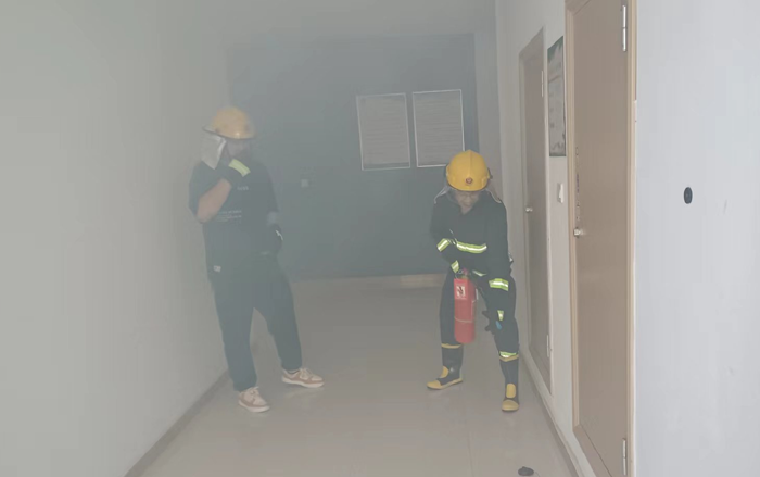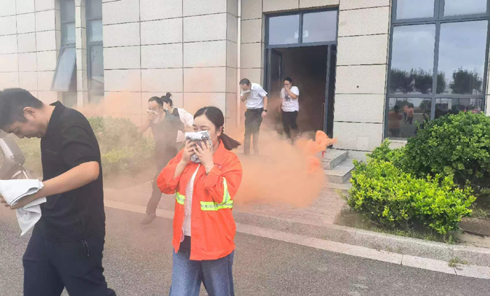 本次演練模擬公司辦公樓三樓電纜井因電路故障引發(fā)火情組織職工開展應(yīng)急疏散。 “起火啦!”15時許,辦公樓三樓一電纜井內(nèi)突然涌出滾滾濃煙。臨近人員發(fā)現(xiàn)著火后,第一時間使用滅火器進行撲救。濃煙觸發(fā)自動報警裝置,消防控制室值班人員接到警報后,立即通知志愿消防隊伍趕赴現(xiàn)場撲救,并撥打報警電話,向應(yīng)急指揮部報告。公司應(yīng)急指揮部立即啟動應(yīng)急預(yù)案,滅火搶救組、安全救護組、緊急疏散組等應(yīng)急小組隨即到位,有條不紊開展滅火、疏散等工作。消防救援隊伍到達現(xiàn)場后,接過現(xiàn)場指揮權(quán),開展滅火救援。安全搶救組搜索受傷人員,并對受傷人員簡單急救后送往醫(yī)院進行治療,緊急疏散組立即組織辦公大樓人員,用濕毛巾捂住口鼻從應(yīng)急通道撤離。10分鐘后,險情排除,應(yīng)急救援結(jié)束。最后,組織部分人員開展滅火實操演練