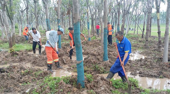 74日,大雨漸漸停息,綠化分公司立即啟動應急預案,結合實際制定工作計劃出動3支綠化先鋒隊開展應急搶險工作,確保第一時間排除險情。