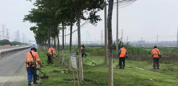 32名綠化先鋒們快馬加鞭趕往新區徐新路、燈塔路、徐圩大道等路段開展行動。工作現場,搶險隊員對倒伏樹木進行扶正加固支撐;加挖排水溝保證排澇正常;清理道路上斷枝、殘枝。搶險隊員顧不上休息,不停重復實施樹木栽植、扶正、加固、斷樁清理等完善工作。經過兩天的持續奮戰,共處理養護區域內倒伏樹木20多株、清理斷枝10余車,修剪綠化帶約5000平方米,累計完成 30%管養區域打藥工作。(陳小東)